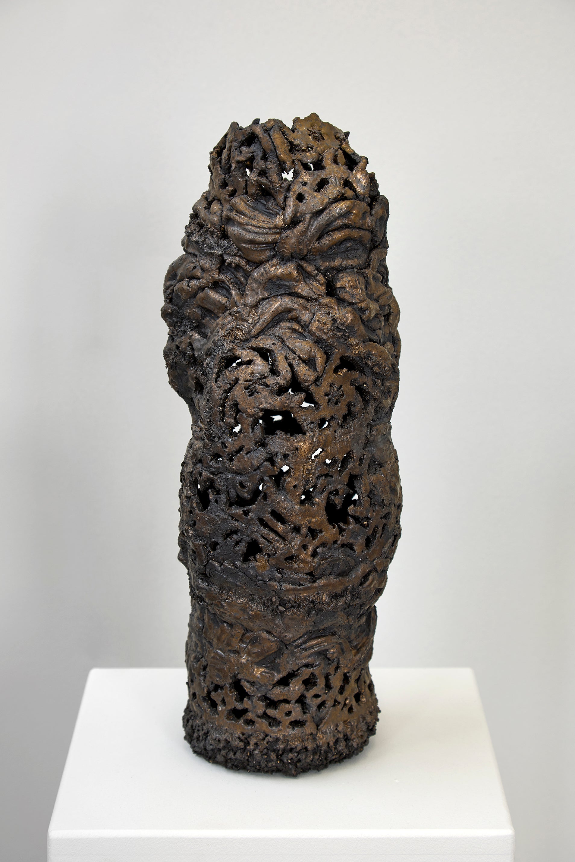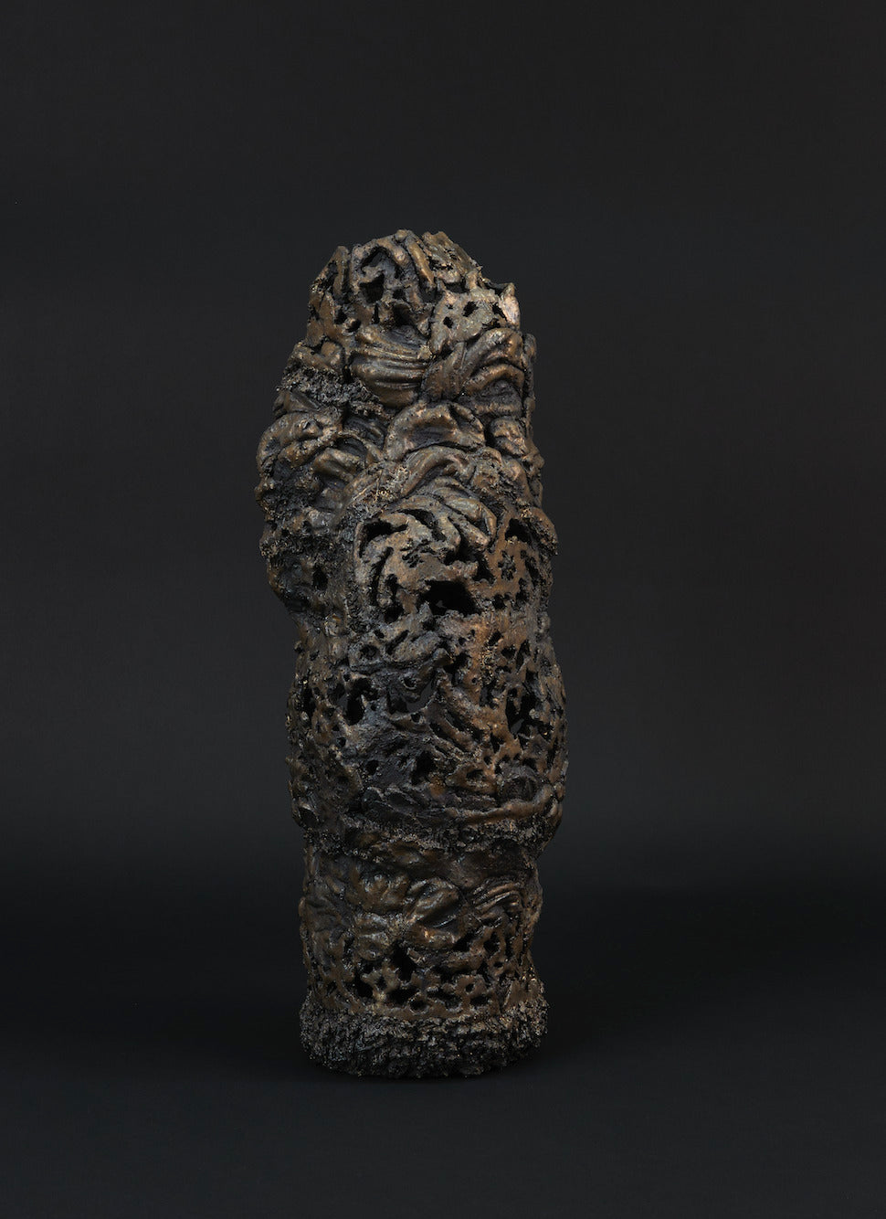 This body of work emerges from the deep wound left by the dismantling and eradication of the Sacred Goddess — a figure revered for over 200,000 years before her systematic erasure under the rise of patriarchal religions and male-dominated ideologies. This work is a visceral, emotional response of this deliberate elimination, metamorphosed into a sacred object of devotion, free from patriarchally derived perspectives and ideologies. Echoing the ongoing political and societal turmoil that male governance continues to impose on women, this work stands as an act of defiance, a rebellion born from the matriarchal ashes, rising as testament and resistance.
