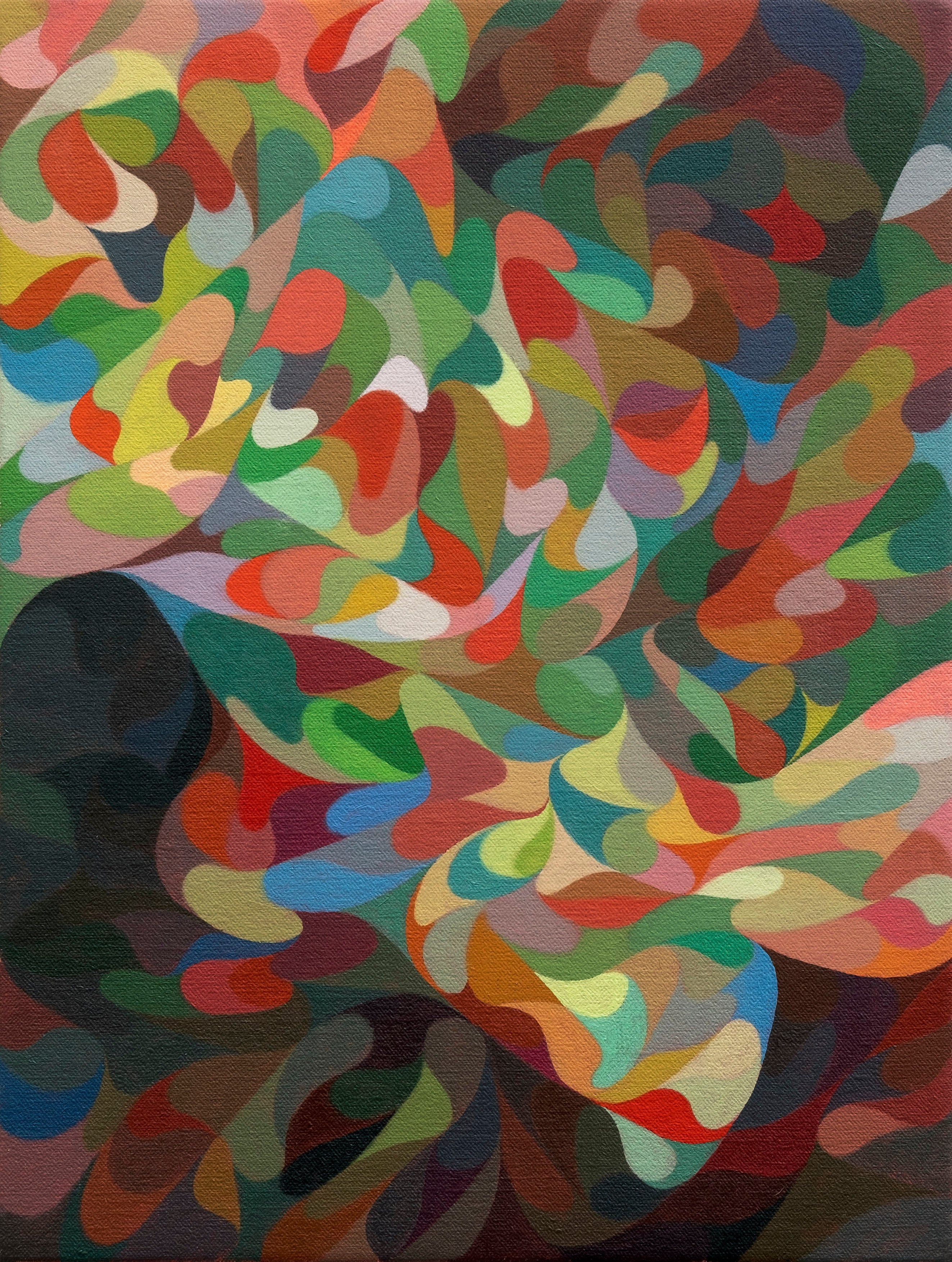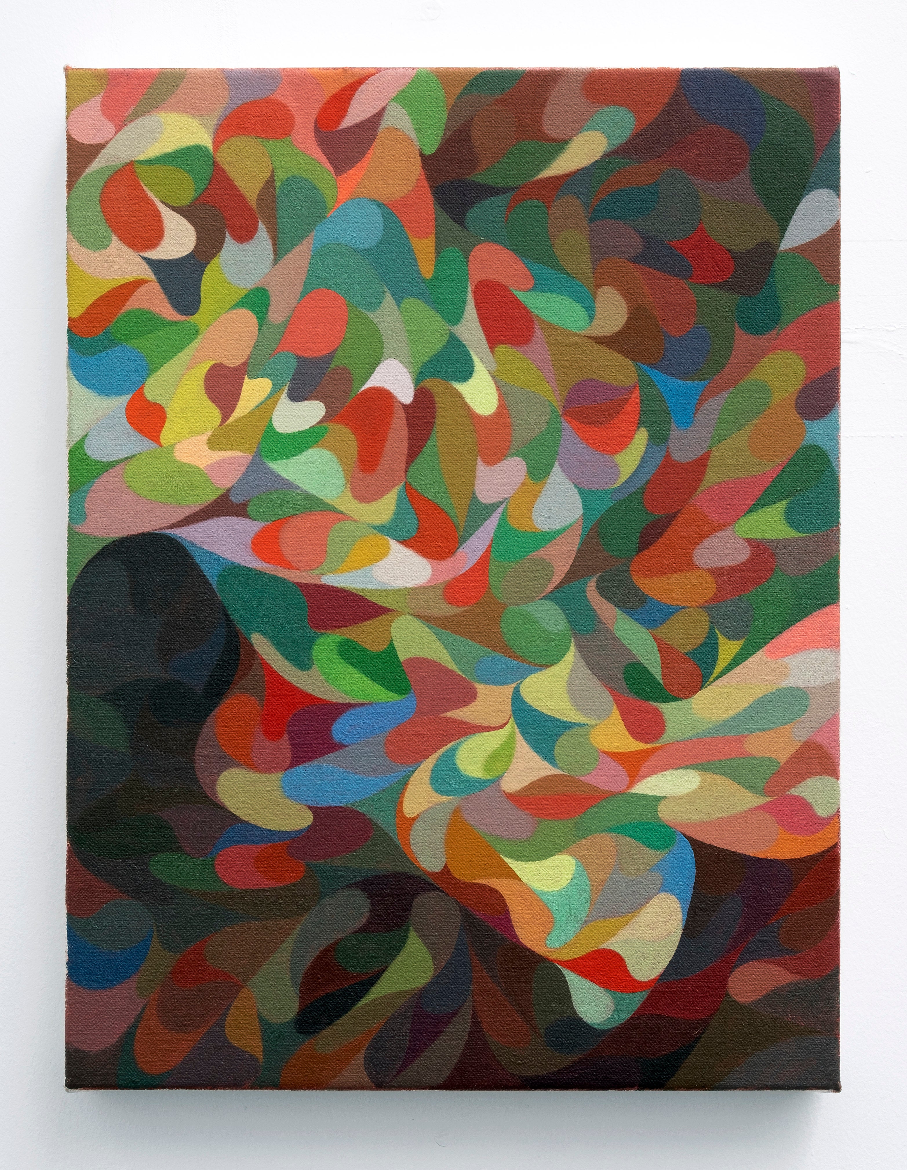 My paintings, expansive and fragmented, contain a sense of luminosity that works its way out from the surface. They recall glimmers of color theory and Venetian tonality, yet move towards a cerebral space in which thoughts remain preverbal and primordial in nature and are built from an inherent geometry. Patterns, colours and relations grow and emerge from reflections of the natural world; a dream of the natural world as it slips through our fingers like sand.