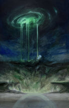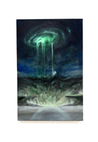 Satellite Broadcasting (2025) explores the intersection of supernatural phenomena and technological sublime. Emerging from my ongoing Mountain Rocks project, the painting draws on the language of typographic cross-section graphs - visual systems that aim for objectivity and transparency. In contrast, the title references the opaque hierarchies of power embedded in broadcast technologies and surveillance. Layered mountainous forms evoke elevated, otherworldly terrains, destabilising the boundary between natural and constructed environments. The work sits within a wider inquiry into synthetic memory, crisis architecture, and the visual codes used to rationalise complex, often ungovernable forces.