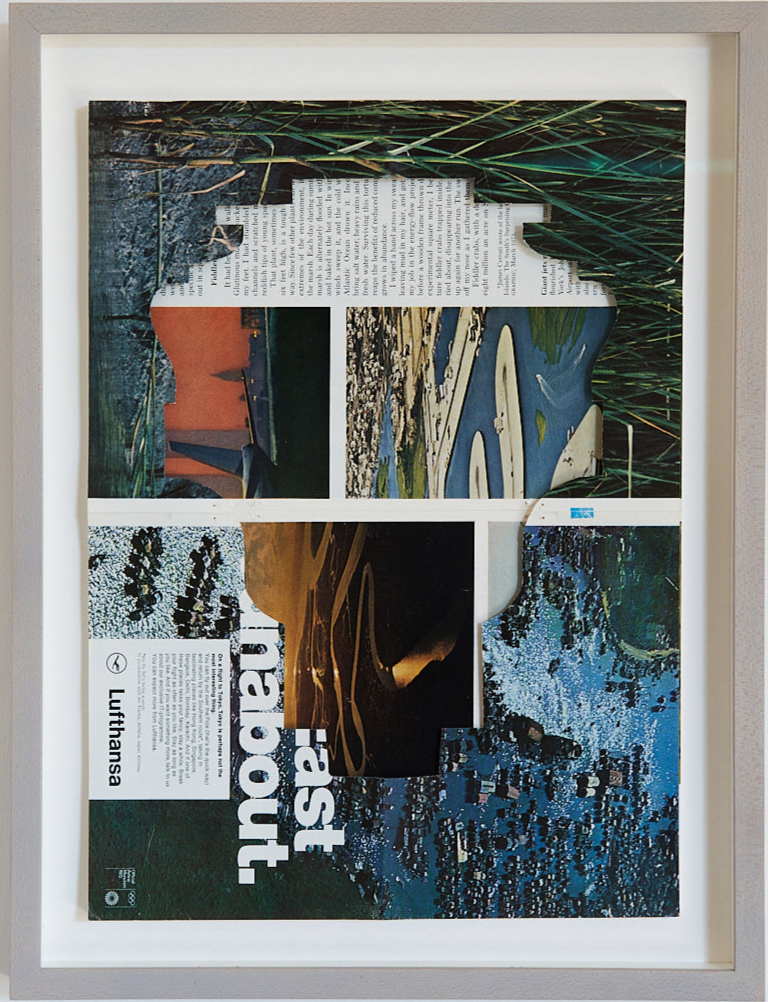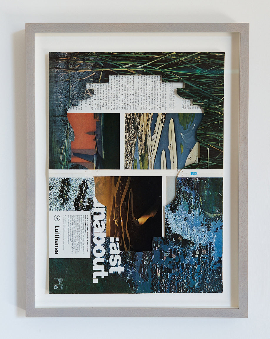 ‘Isle’ is a series of collages inspired by the incredible interior of a London 17th Century house. Once an opulent residence with a collection of Dutch master paintings, the traces of its history can be seen on the walls and floors of the house. Inspired by remaining architectural detail, and imagining the lost ones, ‘Isle’ uses profiles of mouldings cut from vintage magazines to make reference to the global trade connections, and environmental impacts of these partnerships that the residents benefitted from, including trade with East India Company.