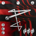 "Structures of Saturn" is derived from tracing a Saturnian talisman, intended to protect and guard boundaries. The figure in the centre was created through a 3D modelling extrusion of the shape of the sigil, while the pattern in the background was created from code written by the artist in the Shader coding language, translating the numerical values of the talisman into a pattern.