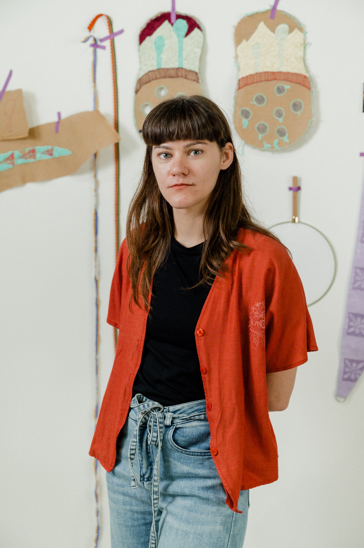 Veins of Life expands on my ongoing interest in nature’s communication systems. This work visually presents an interconnected ecosystem beneath the soil where each point in the embroidery branches out into a single tree. The overall form references a seed, symbolising potential and growth, while the structure beneath suggests a hidden network of life. I have also incorporated a dried thistle, symbolising biodiversity and the ways nature protects itself.