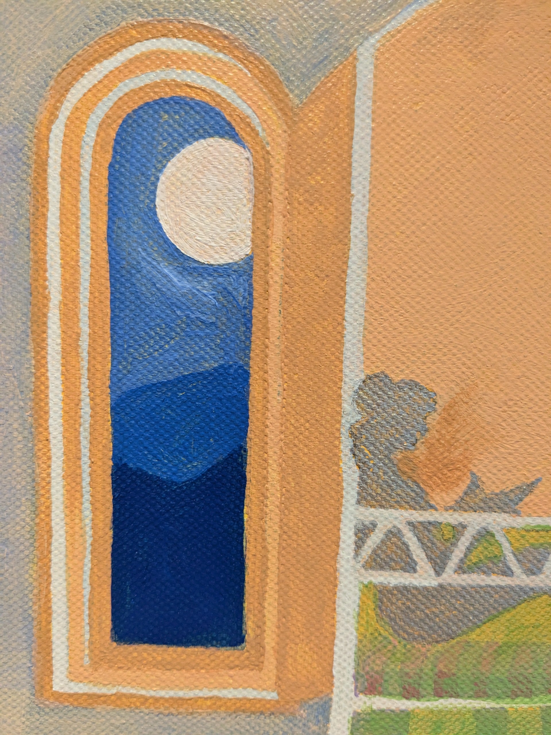 This is a reimagining of a lesser-known fairytale, the Princess and the Pea. First published by author Hans Christian Anderson in 1835, it is likely to have been inspired by traditional folklore. In the story, a princess unwittingly proves her royalty through showing extraordinary sensitivity of being unable to sleep comfortably on a stack of mattresses with a single pea hidden beneath. This modern interpretation shows a cosy figure at night, rather than a bruised insomniac. Perhaps the solution to being perceptive and insightful in a world built for toughness, is to create an environment where these qualities can thrive.