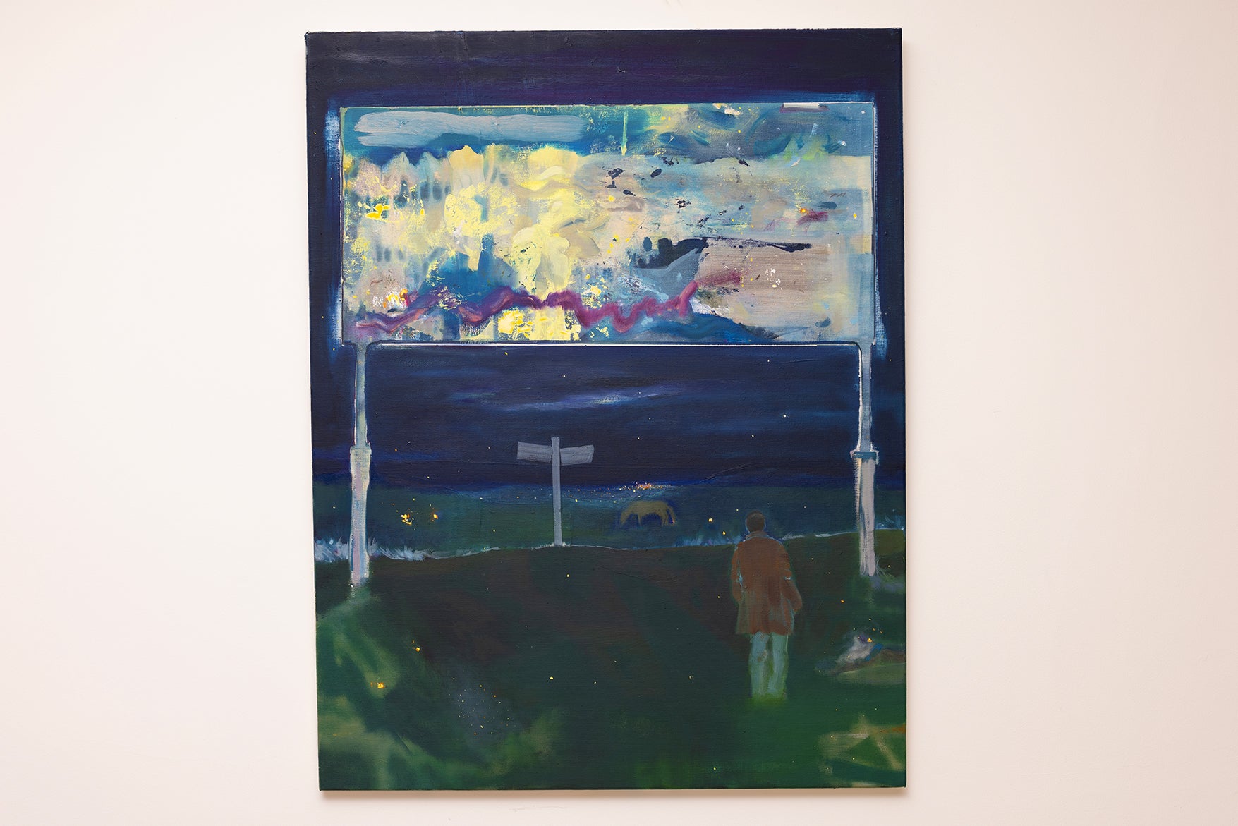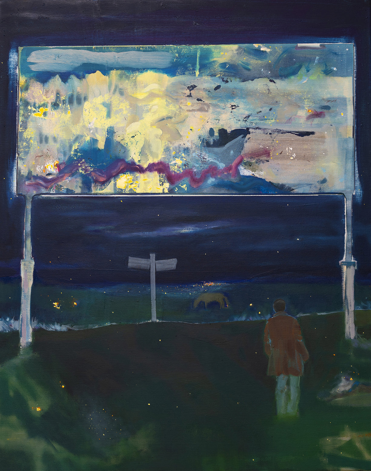 This painting came about during a period in which I walked the South Downs over 11 days. I've been enjoying putting these large billboards into my recent works - abstract paintings within paintings that evoke maps or landscapes, but are lacking in definite information. I'm sort of musing on disorientation, or an inability to grasp a conventional sense of direction, perhaps.