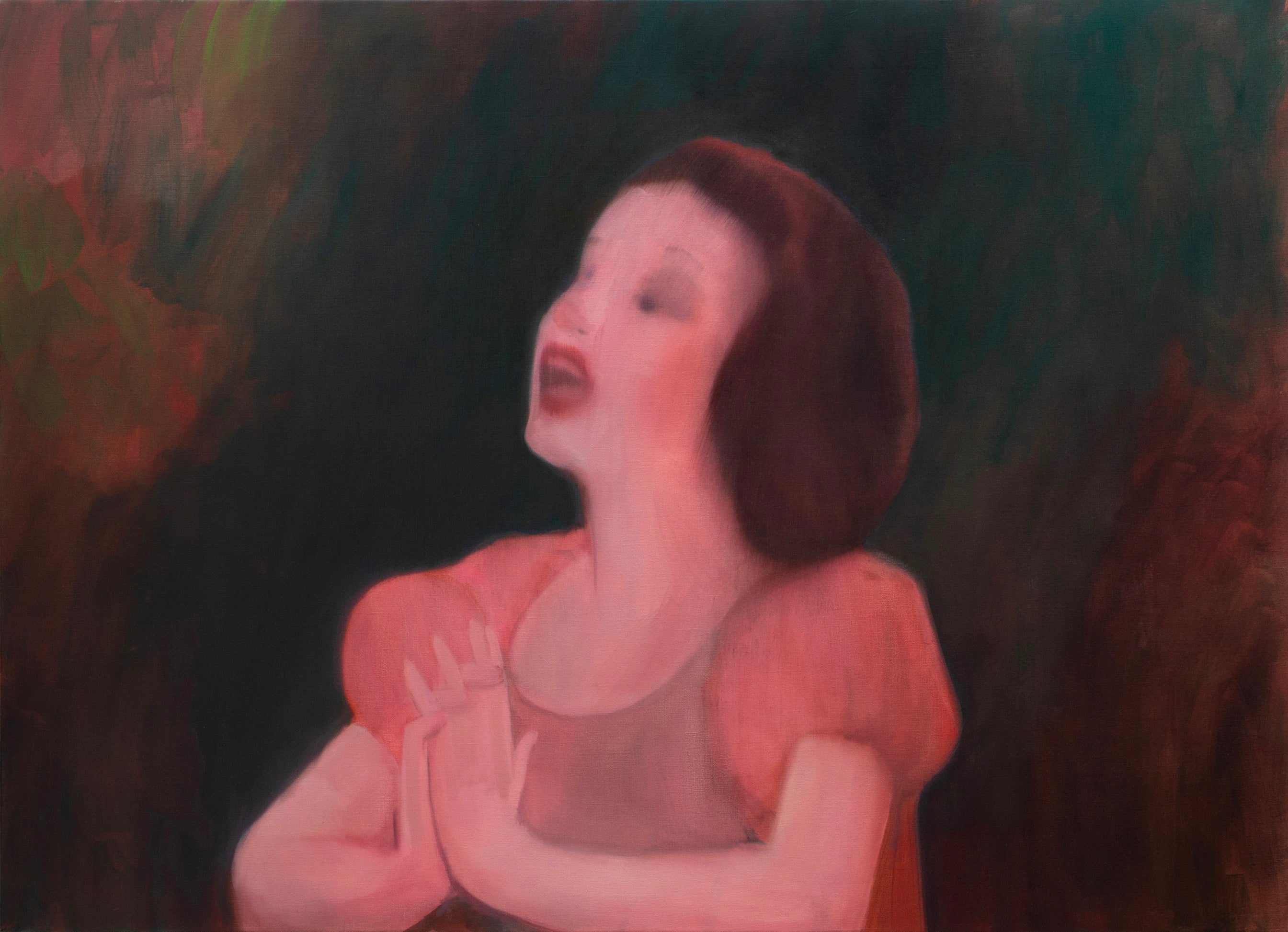 My paintings explore the unconscious dreams, desires and fantasies at play beneath the surface of our everyday lives. This piece is based on my first experience with film and in some ways my introduction to how film seeps into our dreams, desires and fantasies. The film is passed through a prism of memory and emotion to create a more dreamlike scenario. The scene of affinity with the wilderness struck a chord deep inside me and remained as a facet of my deepest fantasies and desires.