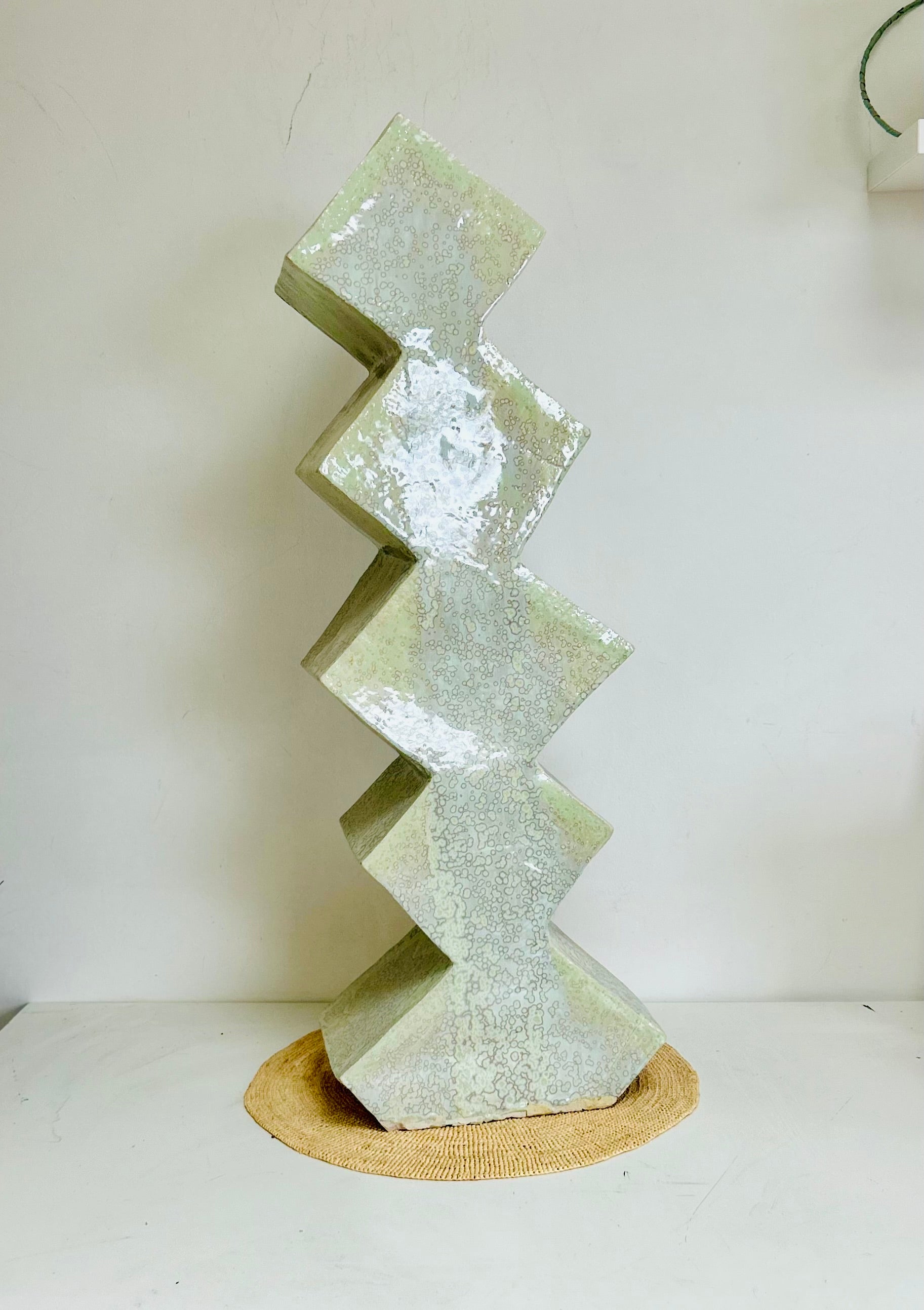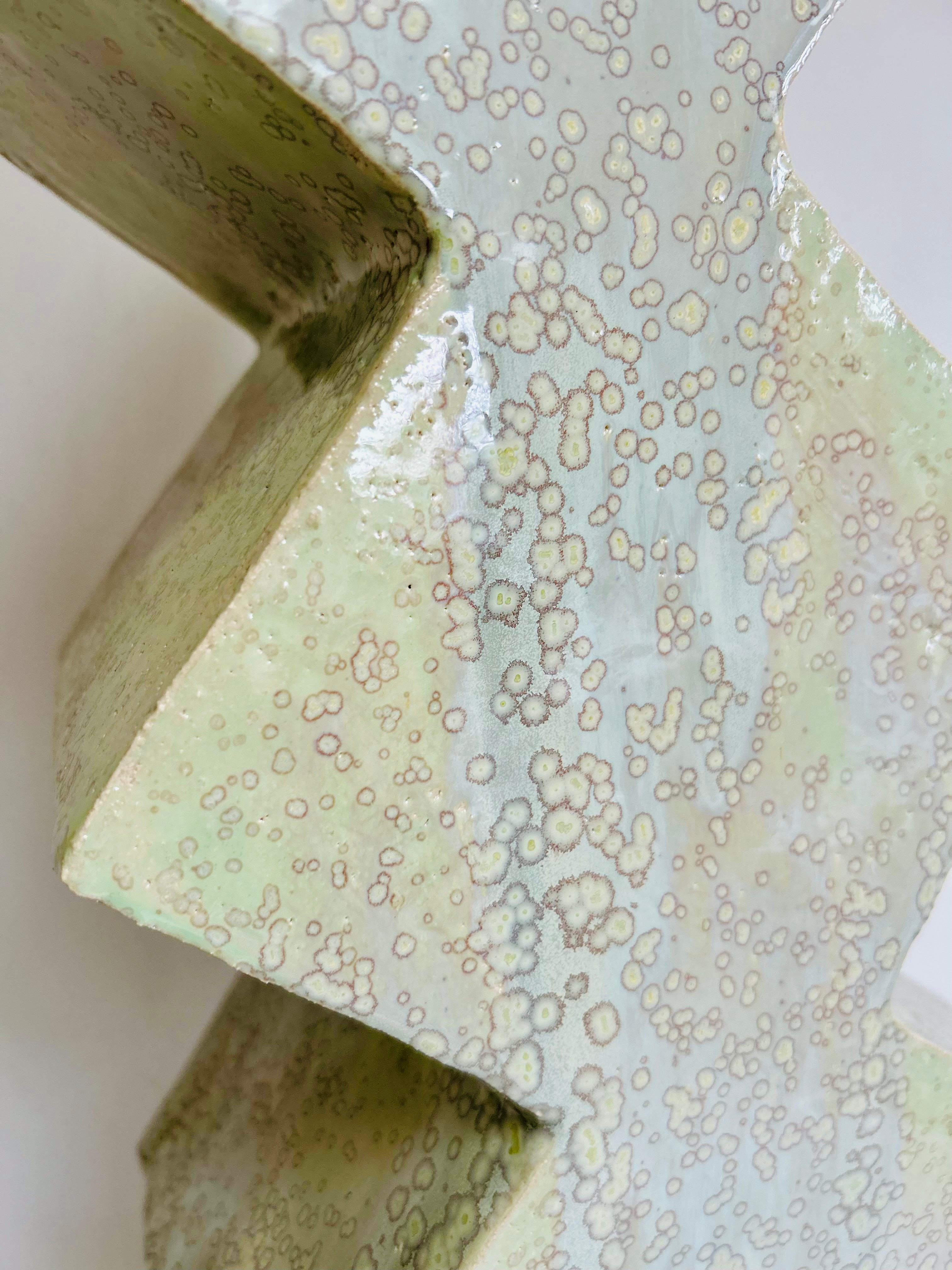 Strong hand cut shaped based on quick drawings - the spaces between - making something solid and contrasting to surroundings, beautiful lustre glaze with shimmering surface.