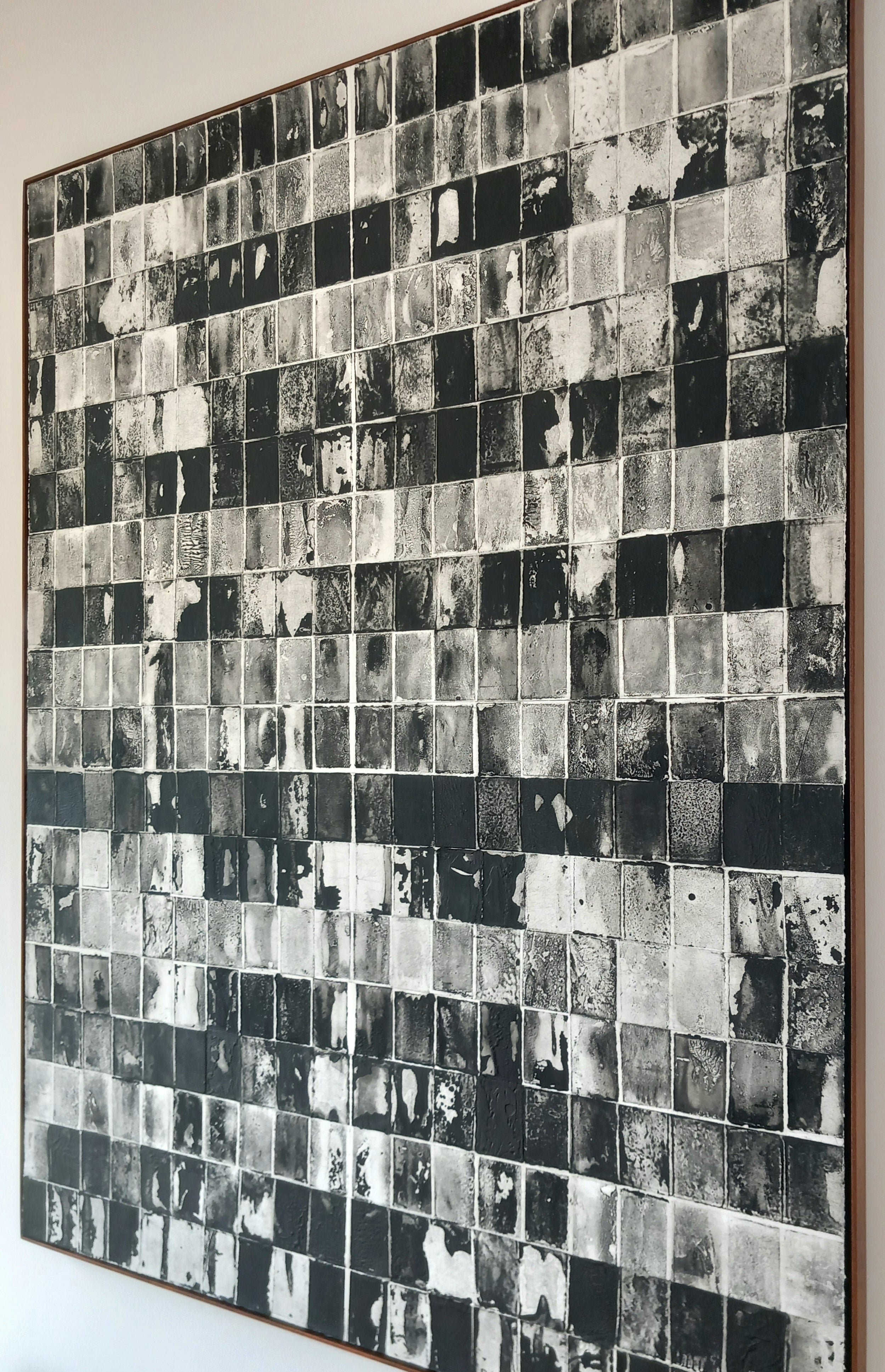 Deep Time is made with ancient eroding earth Bideford Black from the North Devon Coast. At over 300 million years old the earth holds the deep geological time of the planet, each rectangle has been for a walk along this eroding stretch of coast - attached to the base of my walking boots each rectangle holds a 1:1 residue of the textures underfoot and the passage of time. Coming together it forms an alternative map of the textured landscape forged through the lens of my walking body.