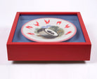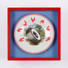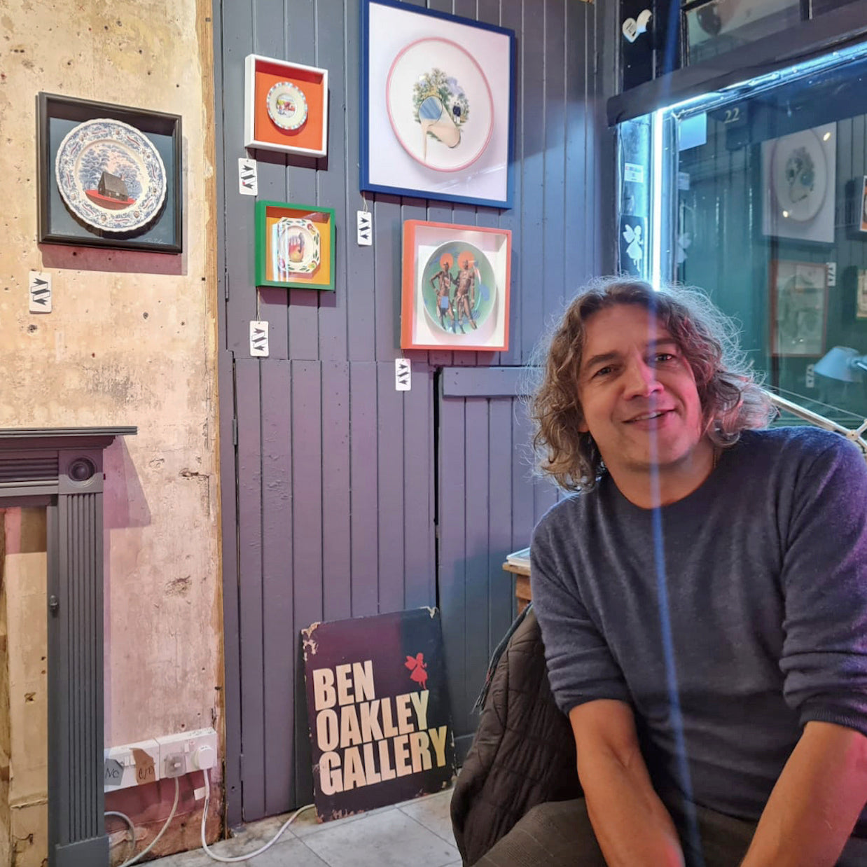 My latest project uses discarded plates as illustrative storyboards, highlighted within bespoke crafted box frames. I love the random abandon of this process as you’re never quite sure which direction the narrative might go, nuanced by the set patterns, hues, textures or accidental imperfections of the original ceramic. As well as the absurdity of modern life there are also a number of developing series such as imaginary dystopian future worlds or cities. The ongoing rolling Tyres production line are a paean to my favourite French word ‘Pneu’!