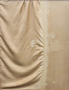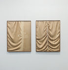Swaddled: Shrouded The title refers to the textiles used to wrap a human body at the beginning of life and its end, a textile bookend. It can also allude to being swaddled in terms of receiving information, like from authorities or parental figures. In the same way things can be shrouded in mystery, whether it be from things being unknowable or deliberately kept from us.