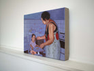 Painted using acrylic on linen, this work is part of a series that draws on photographs from my childhood. It captures an intimate moment in which my grandmother is feeding me. The title, Cau cau, refers to the dish I am eating — a traditional Peruvian stew and one of my favourite dishes as a child. The work is rendered in a nostalgic colour palette and reflects on themes of memory, care and familial relationships.