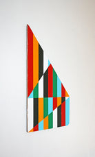 Inspired by the shape of the discarded wood panel, I experimented with colour with black and white acrylic whilst positioning the work in various ways. I went on to create the Diagonal Series.