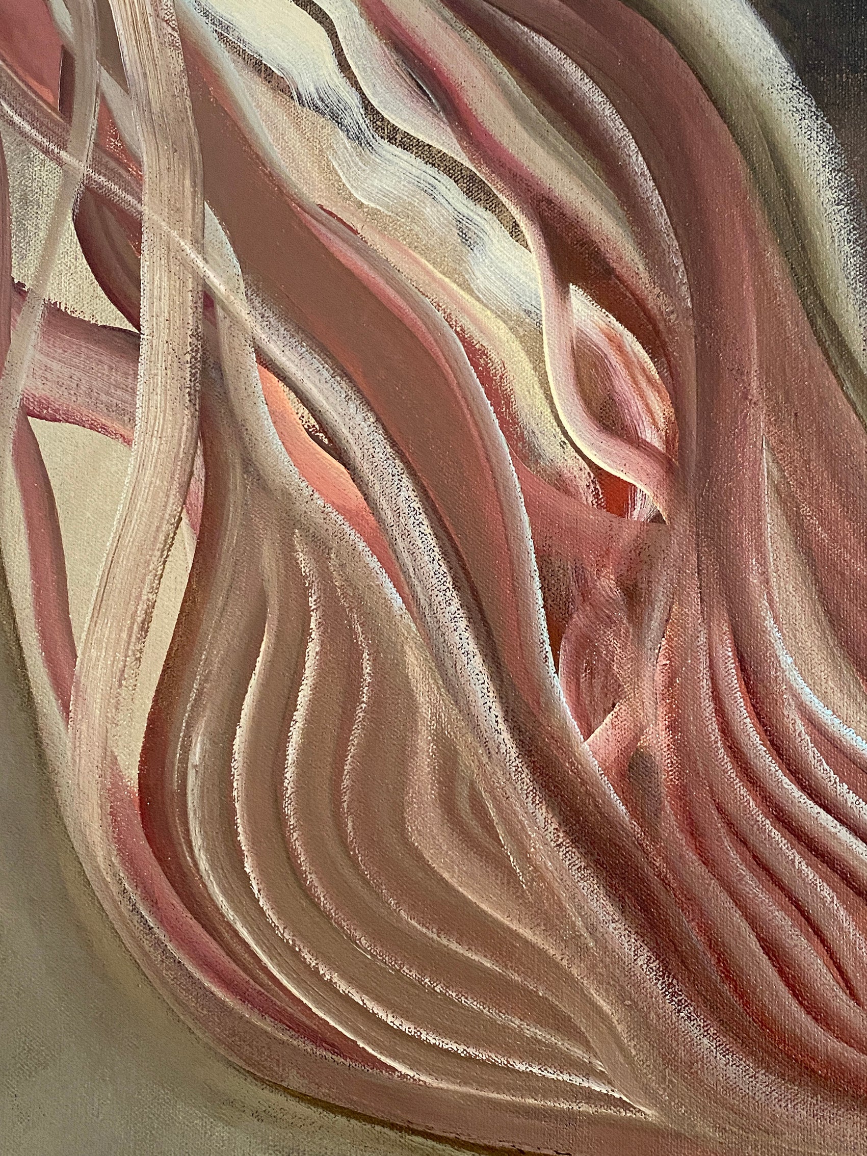 This work is from my ‘Where the Blood Runs Wild’ series, which was created in the spring/summer of 2025. This series drew heavily on references to the natural world, full of membranous pockets of half-glimpsed activity and existing out of our line of sight. It’s a visceral painting, full of depth and movement, and marks the point where I moved into works where layering and texture was much more dominant.