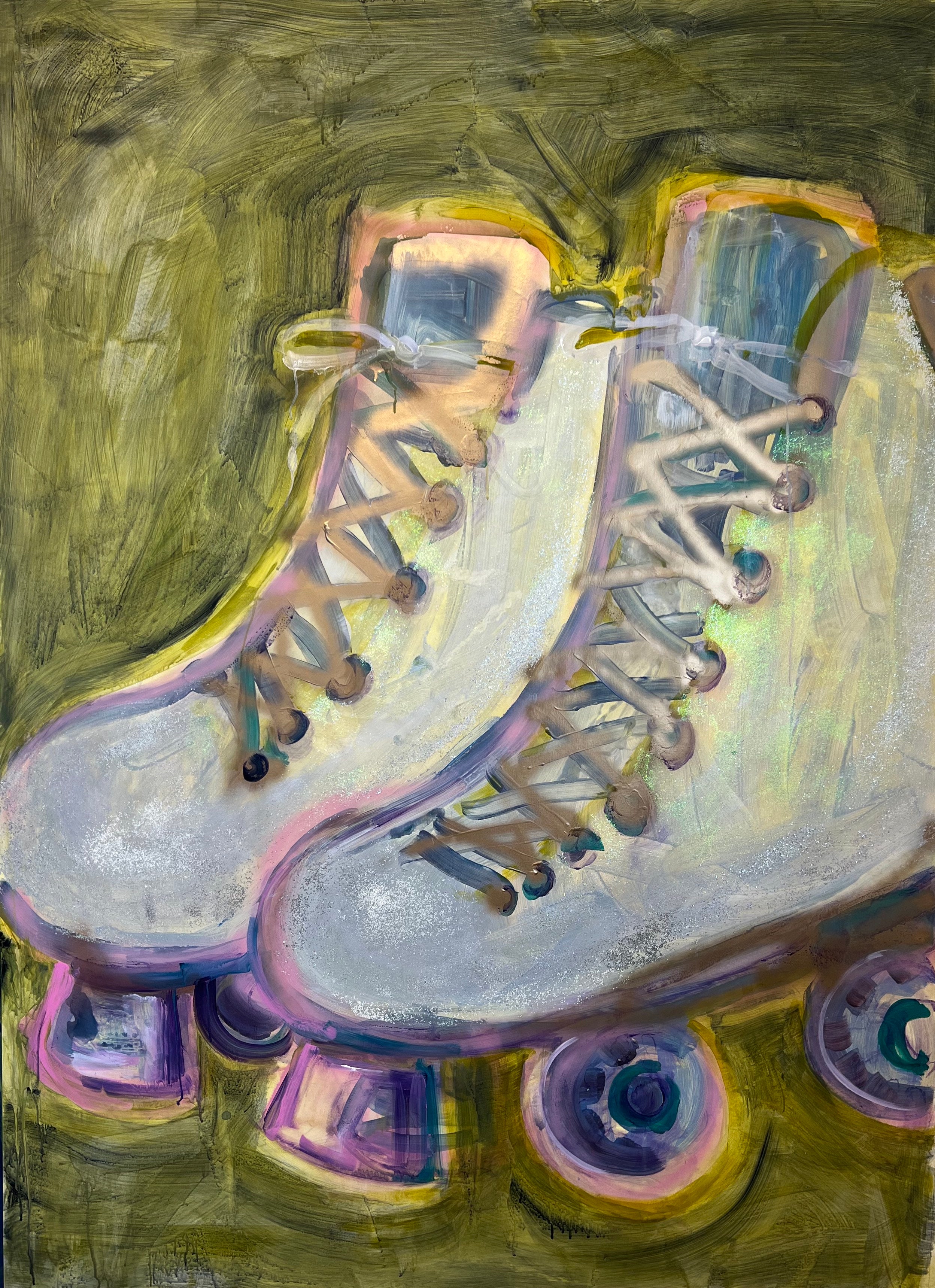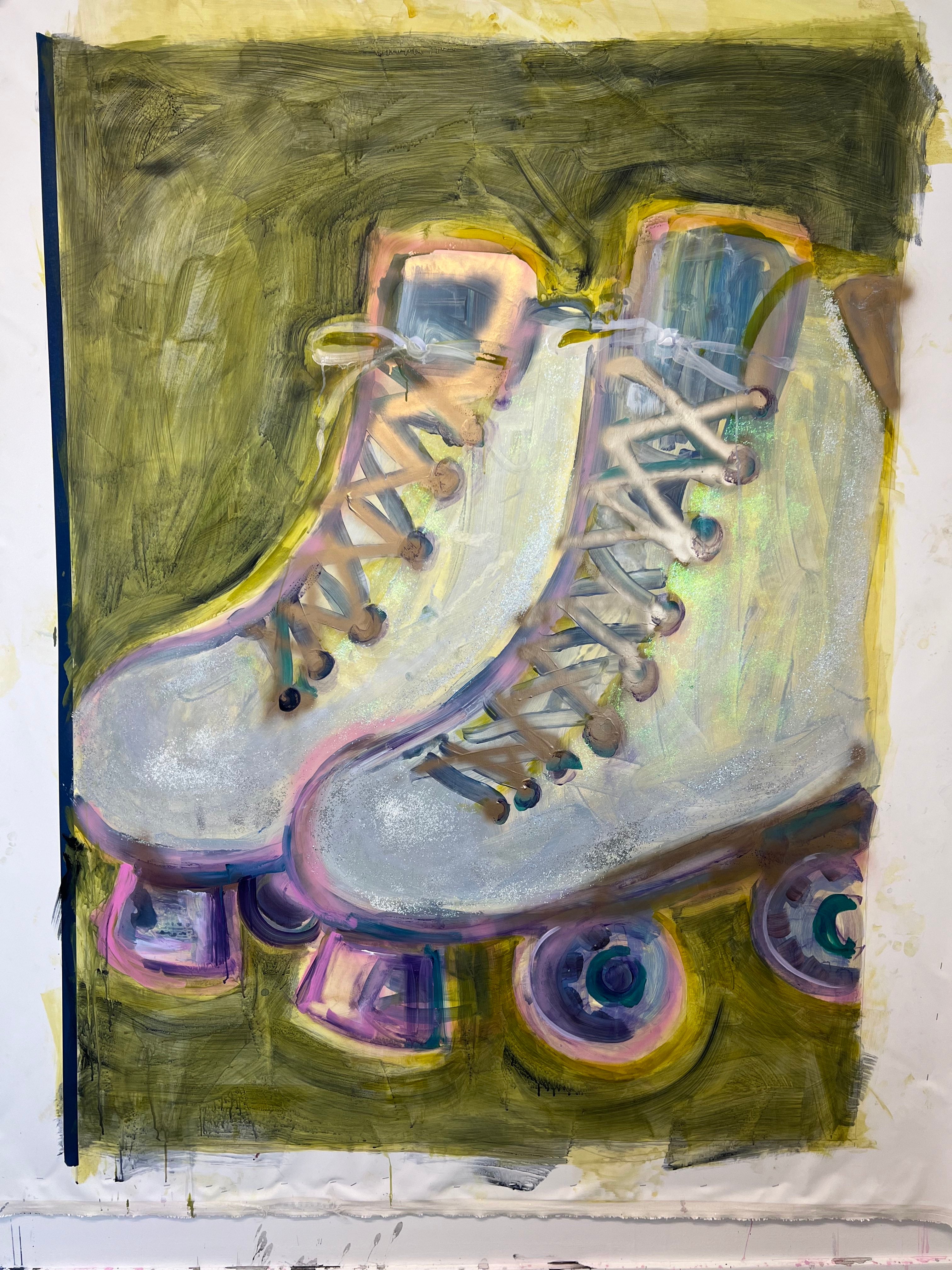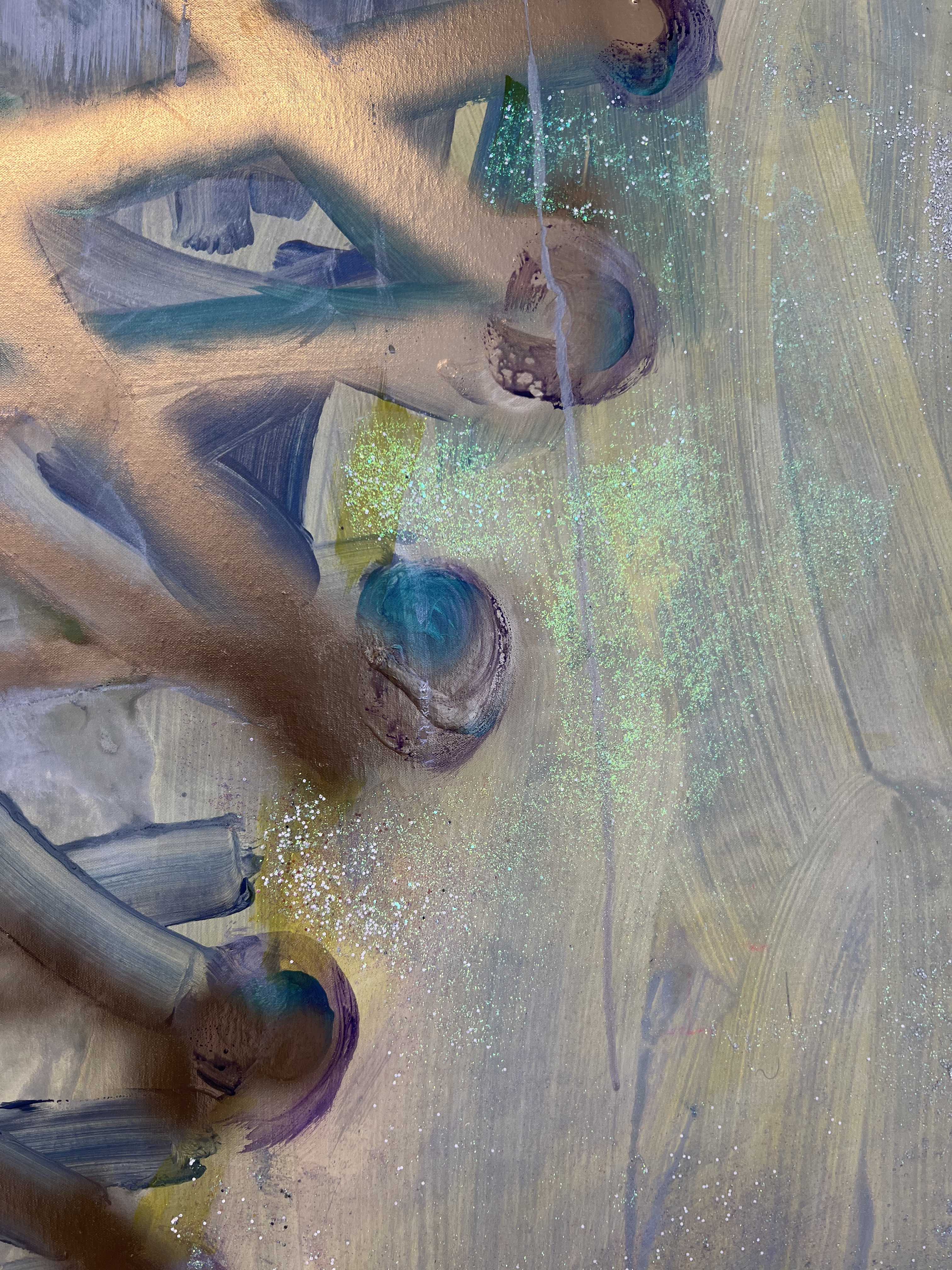 Young Love' is about trying to recapture the nostalgia we feel as children and the layers of the paint create a sense of time passing. The scale is used to highlight the memory that has faded and emphasise the importance of objects to us when we are young. I am preoccupied with how mental states alter engagement with reality, how psychological shifts can imbue seemingly banal images, objects or even surface patterns with a kind of confused aura to hint at a deeper significance.