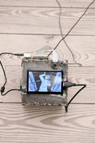 Developed collaboratively with Jamie Seechurn (@thameswater, https://thameswater.studio) alongside the video installation On Data, As Dust-yet existing as a standalone work-Interstice is a welded steel structure that houses a screen and motherboard, threaded within a network of wires. It functions as a reflexive memory system: observing the viewer and feeding that experience back into itself. The work becomes a looped mechanism of perception and erasure-a window through which memory is formed, only to be forgotten.